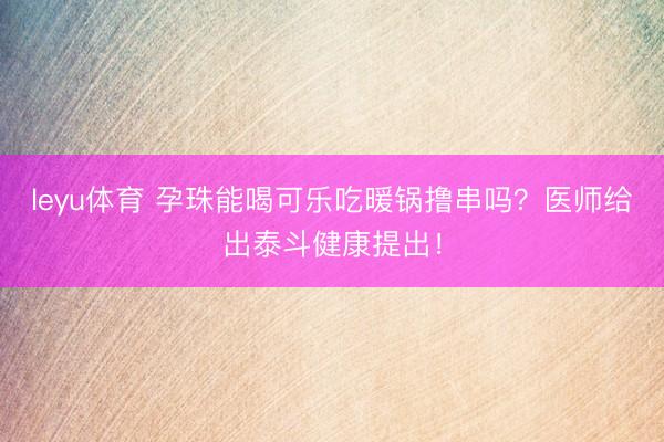 leyu体育 孕珠能喝可乐吃暖锅撸串吗?医师给出泰斗健康提出
