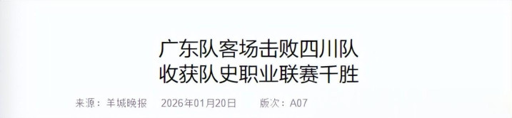 羊城晚报——广东队客场击败四川队 收获队史职业联赛千胜