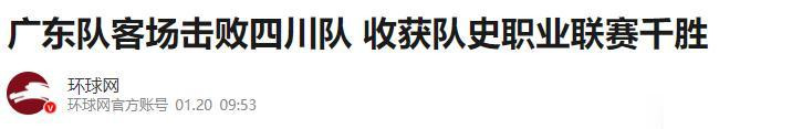 环球网——广东队客场击败四川队 收获队史职业联赛千胜