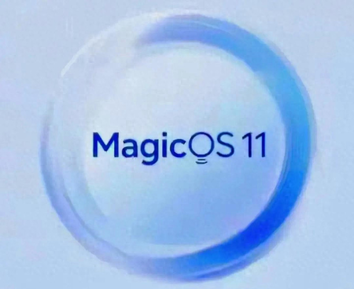 MagicOS 11象征 :蓝色环形配景搭配蓝色MagicOS 11字样