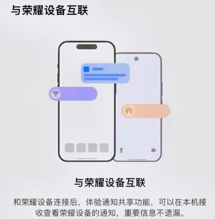 开采互联暗意图 :两部手机展示与荣耀开采互联的奉告分享功能
