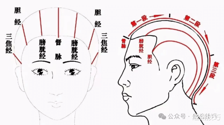 2、从两侧额角开动,斜着往后脑勺中间梳,这个区域有膀胱经和胆经。膀胱经是肉体较长的阳经,胆经与肉体助长发育干系,把这里梳透了,为德不卒的嗅觉会有所减轻。