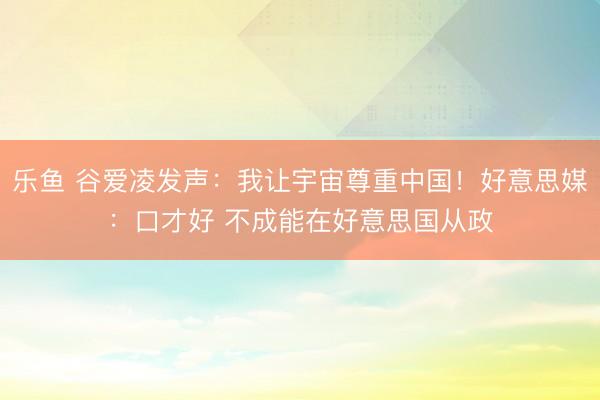 乐鱼 谷爱凌发声:我让宇宙尊重中国!好意思媒:口才好 不成能